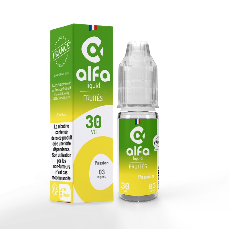 Le e-liquide Passion est fabriqué en France par Alfaliquid.