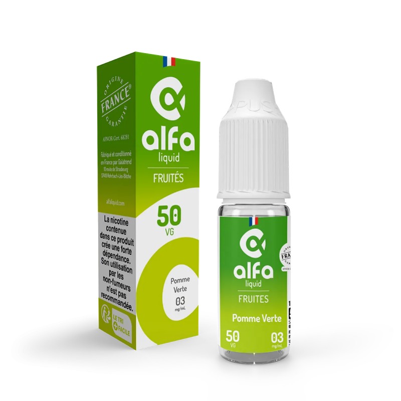 Le e-liquide Pomme Verte est fabriqué en France par Alfaliquid.