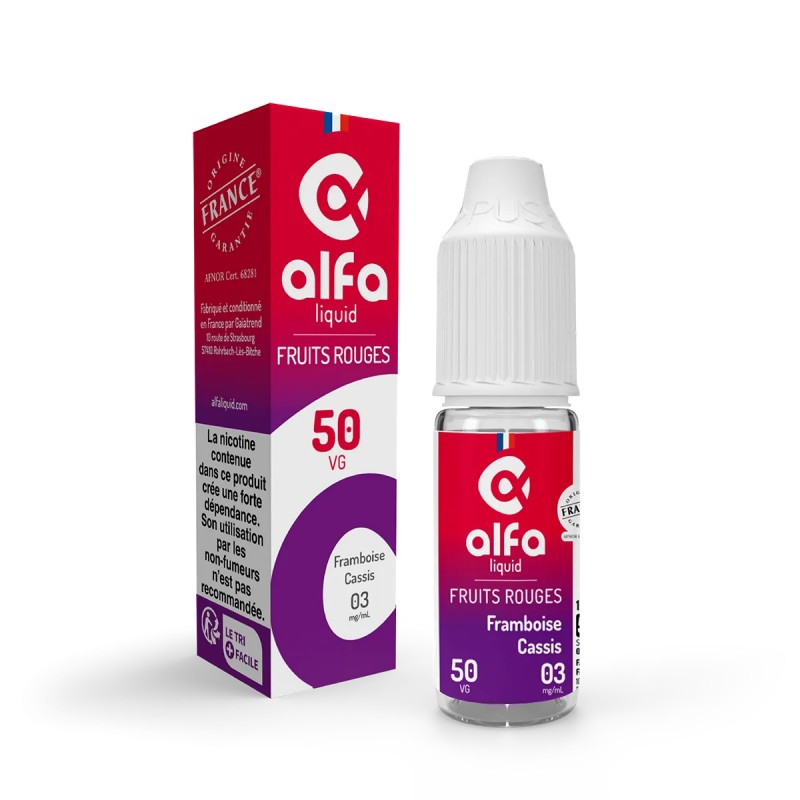 Le e-liquide Framboise Cassis est fabriqué en France par Alfaliquid.