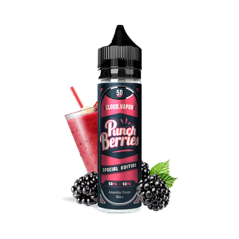 Le e-liquide Punch Berries, un délicieux smoothie crémeux à la fraise avec des morceaux de mûres. Ses saveurs onctueuses et envoûtantes vous transporteront sur un nuage de douceur !