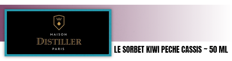 Le e-liquide Sorbet Kiwi Pêche Cassis est fabriqué en France par Maison Distiller.