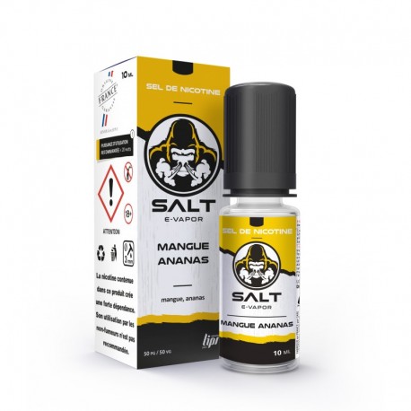 Le e-liquide Mangue Ananas aux Sels de nicotine, un mélange fruité et rafraîchissant aux saveurs de mangue et d'ananas, au parfum enivrant et ensoleillé.